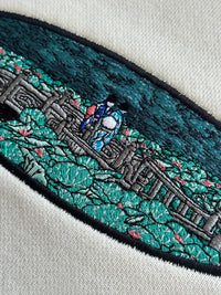 Introducing a new machine embroidery design inspired by Japanese artist Kawase Hasui — "The Pond at Benten Shrine in Shiba."